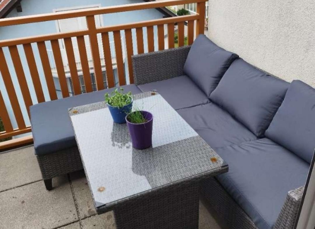 Der Balkon (7,5 m²) lädt zum Entspannen ein und ist mit einer gemütlichen Sitzgarnitur sowie einem Elektrogrill ausgestattet.